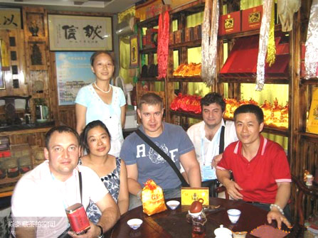 藏茶の特徴とその他のお茶との比較藏茶は睡眠に影響はありません。お茶の中で睡眠に影響する物質はカフェインです。カフェインの新鮮な茶の中の含有量は最高で、藏茶は渥堆発酵する期間が長いため、物質の複合の過程中でカフェインの減衰はわりに多く、100mlのなかに20mg(緑茶が70mgを含む)藏茶はポリフェノールを含み、神経を鎮める作用をし、脳の神経細胞の作用を労わり、カフェインが誘発する興奮を抑えて調整します。 藏茶は決して睡眠に影響することなく、かえって睡眠の質を改善して、不眠、神経衰弱を予防します。 黒茶とプーアル茶の違い湖南、湖北、四川、雲南、広西などの省区が黒茶の主要な生産区です。黒茶は小葉種の茶樹の成長した新鮮な葉を原料にして毛茶をつくります。プーアル茶は雲南大葉種の晒青毛茶を原料にして、自然発酵と陳化させて、あるいは人工渥堆発酵させて再加工して製作します。黒茶とプーアル茶の外形、内質は本質的に異なる性質を持っています。黒茶は主に緊圧した茶を造り、近辺へ販売し、プーアル茶は各種の規格の散茶と各種の形の緊圧茶を近辺のほか国内、海外への輸出用に販売されます。 黒茶は北方少数民族の茶馬交易の中で発展してきた特殊な茶の種類です。むかしは別称、番茶と呼んでいました。 黒茶の色合いは黒褐色で潤いがあり、風味は純粋でほのかな渋みがあります。水色は明るい紅色の輝きがあり、糖分を減らして脂肪を減らす性質あり、ダイエットと消化を助ける特殊な効果があるとされています。 |
